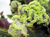 Махровые сиреневые цветы с сильно-гофрированной зелёной бахромкой очень нарядны на фоне тёмно-зелёной гофрированной листвы.